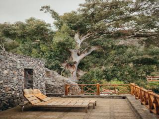 Die Unterkünfte sind eine Hommage an die kanarische Bauweise: Naturstein, Holzbohlen aus dem 18. Jahrhundert und traditionelle Dachziegeln fügen sich harmonisch in die Landschaft ein. Moderne Ausstattung, Kunstwerke und Antiquitäten schaffen ein einzigartiges Ambiente.