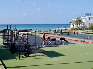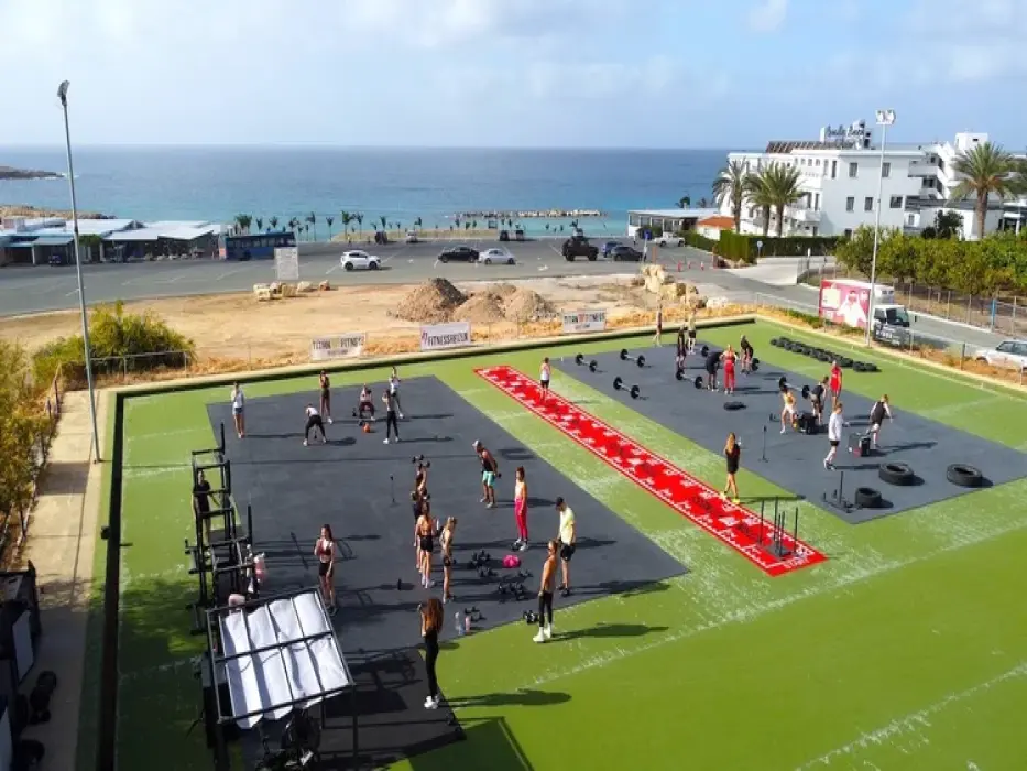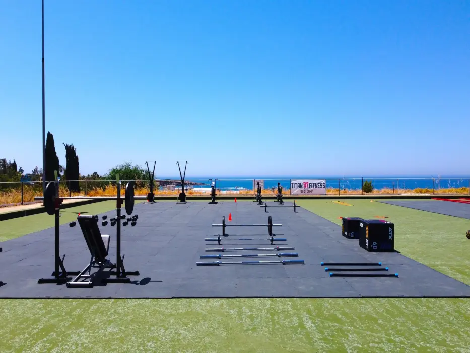 Outdoor Fitness Bootcamp: 1.500m² Plattform direkt am Meer – das erste HYROX Gym in Zypern, ideal für Fitnessbegeisterte und HYROX-Fans.