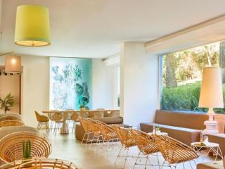 Nur wenige Schritte vom feinen Sandstrand entfernt findest du eine moderne Hotelanlage. Alle Apartments sind klimatisiert und bieten dir einen Balkon, eine Küchenzeile mit Kühlschrank, Mikrowelle und Wasserkocher sowie TV. Lass dich in den Restaurants mit mediterranen und internationalen Spezialitäten verwöhnen – als Buffet oder à la carte. Auch eine gemütliche Poolbar wartet auf dich. Die Anlage liegt im Herzen von Palma Nova, nur 200 Meter vom Strand und wenige Gehminuten von Restaurants, Bars und Shops entfernt. Nach Palma sind es rund 20 km, der Flughafen ist etwa 25 km entfernt.