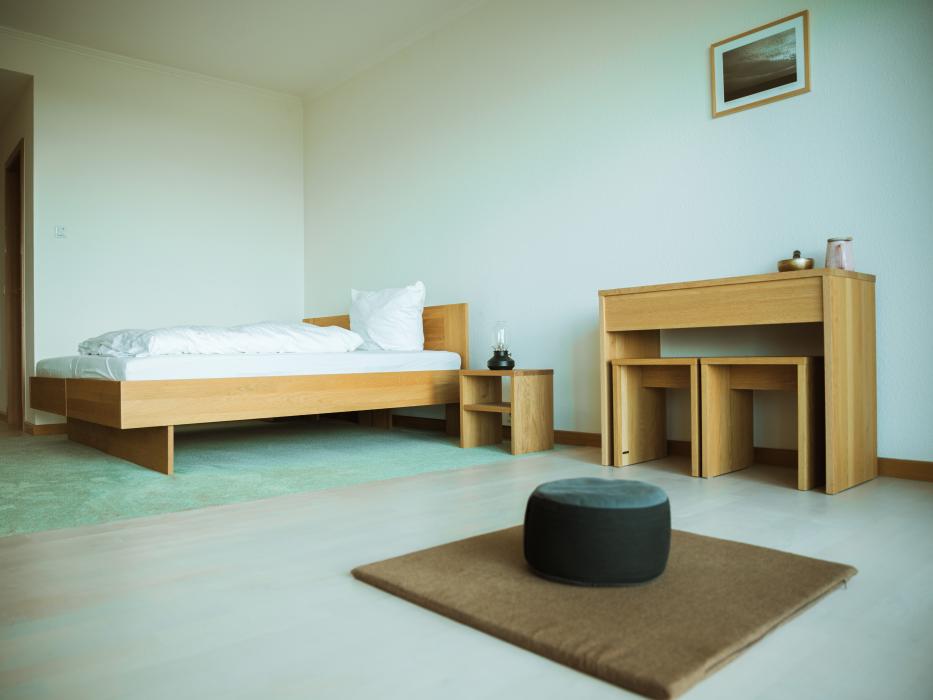 Die Zimmer sind bewusst schlicht gehalten – ohne WLAN, ohne Fernseher, ohne Ablenkung.