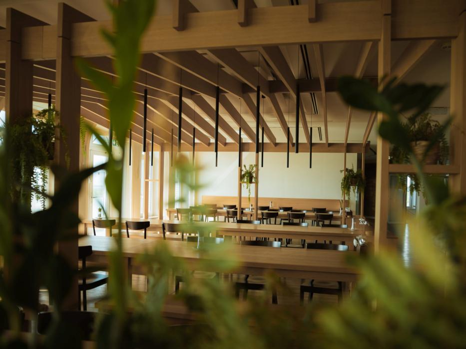 Stattdessen: Holz, Licht, Weite und eine Atmosphäre, die zur Klarheit einlädt.
