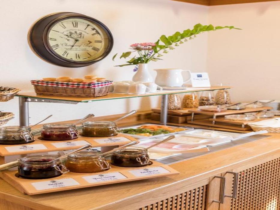 Kulinarisch wirst du im Restaurant mit hochwertiger Küche verwöhnt. Bei gutem Wetter genießt du dein Essen oder einen Drink auf der großen Gartenterrasse im Grünen. Für den kleinen Hunger zwischendurch steht dir zusätzlich eine Snackbar zur Verfügung. Unter der Woche kannst du dich am reichhaltigen Frühstücksbuffet stärken, in der Regel von 06:30 bis 10:00 Uhr.