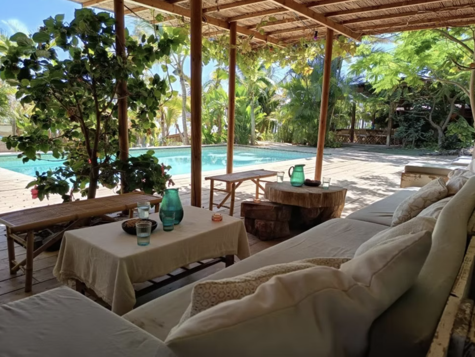Auf einer 110 m² großen Holzplattform, geschützt von einer 200 m² Greenhouse-Struktur, entsteht ein einzigartiges Raumklima durch tropische Pflanzen, natürliche Belüftung und Meerblick. Dieser Bereich ist flexibel nutzbar – sei es für Yoga, Meditation, Workshops oder Meetings.