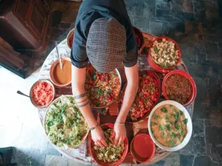 Der Tag beginnt mit Tee, Obst und Nüssen, gefolgt von einem warmen, stärkenden Frühstück. Das Mittagessen bildet die Hauptmahlzeit, während das Abendessen bewusst leicht gehalten ist, um erholsamen Schlaf zu unterstützen. Obst, Wasser und Kräutertees stehen ganztägig zur Verfügung.